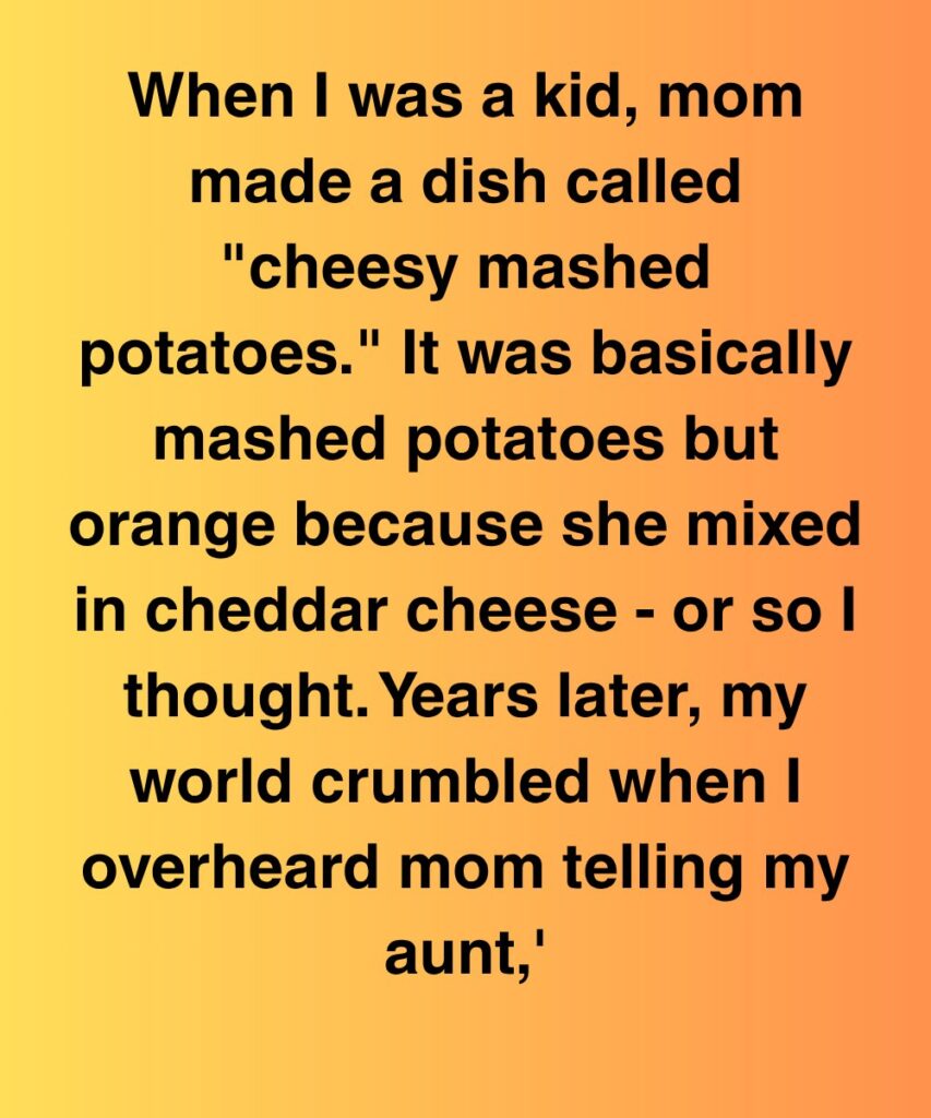 When I was a kid, Mom made a dish called “cheesy mashed potatoes.” It was basically mashed potatoes but orange
