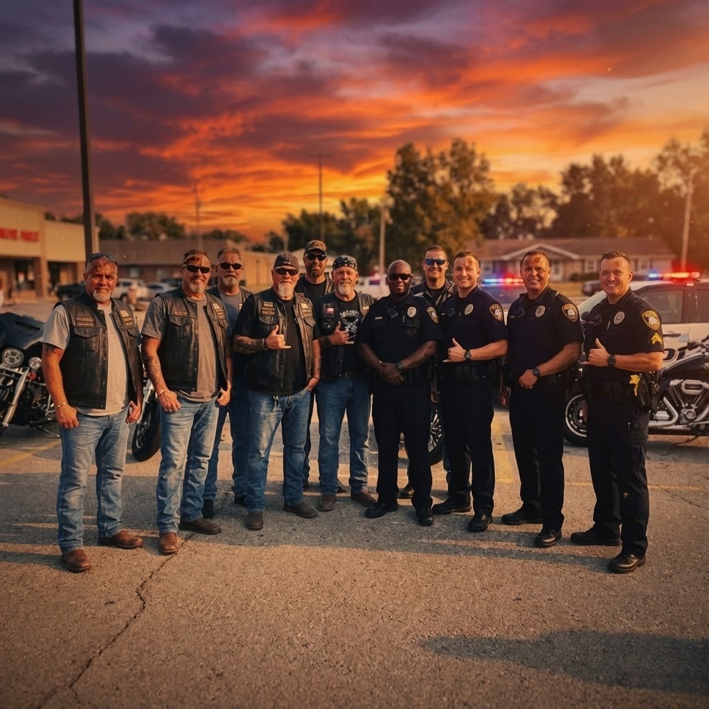 But that misunderstanding turned into something extraordinary. Once the truth was out the widow invited them in and we did too turning strangers into family as cops and bikers worked side by side to support the Morrisons. We fixed up the house shared stories of Danny and became a presence in that little boy’s life—men in leather vests and men in blue sitting together at the same table promising he would never feel alone again. His smile returned slowly piece by piece as he learned his father had brothers everywhere brothers who were ready to fight for him just like his dad once fought for all of us.