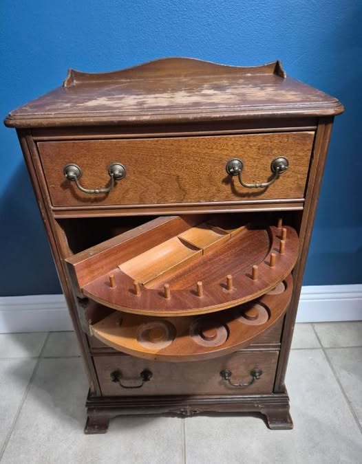 I wandered into a quaint antique shop, the kind that smells of old wood and hidden stories. Tucked in a musty back room, I spotted it: a tiny vintage sewing cabinet. I wasn’t looking for one—I can barely sew—but something about it drew me in.